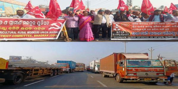 ଭଦ୍ରକ, ୧୨ ଫେବୃୟାରୀ (ହି.ସ.) - ବିଭିନ୍ନ ଦାବି ନେଇ ଆଜି କେନ୍ଦ୍ରୀୟ ଶ୍ରମିକ ସଙ୍ଗଠନ ମିଳିତ ମଂଚ ଓ ସ୍ୱାଧୀନ ଫେଡରେସନ୍ ସର୍ବଭାରତୀୟ ସ୍ତରରେ ବନ୍ଦ ଡାକରା ଦେଇଥିବା ବେଳେ ଏହାର ପ୍ରଭାବ ଭଦ୍ରକ ଜିଲ୍ଲାରେ ପଡ଼ିଛି। ଫଳରେ ୧୬ ନମ୍ବର ଜାତୀୟ ରାଜପଥ ର ଦୁଇ କିଲୋମିଟର ପର୍ଯ୍ୟନ୍ତ ରାସ୍ତା ଉପରେ ବହୁ ତୀ